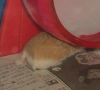 変なトコに家ができてる!!!(((( ;゚Д゚))) お迎えのときにもらった床材を陶器の中に入れてたのに、今朝はそれもばらまいてる!!! 見えてないけど、キマさんはこの中。寝起きでぼんやりしていたわたし、これ見た瞬間「お目覚めリフレッシュ」でした。 早速、念のために購入してあった、キマが3ヶ月ちょっと使っていた床材を敷いたワケです。こんなコトなら、やっぱり前の日の夜に敷けばよかった・・・と思いましたの。 なんでかって言いますと。 掃除も終わり一段落してキマのケージを覗いたら、マイカーでドライブ中だったんですけどね。 キマ、こんな感じだったのですよ↓