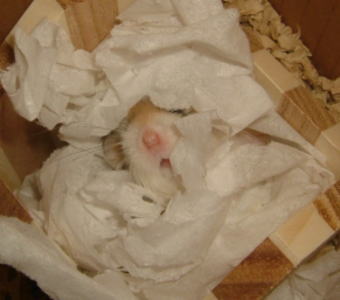 調子に乗って、本日2回目の投稿です♪ キマが来てちょうど1週間。 ホントにちょびーーーっとずつだけど、いろんなコトに馴れてきてます。 そして今日、なんとキマが・・・・・・ 差し出したひまタネ(超小つぶ)を受け取ってくれたのですよーーーーーーっ!(絶叫) と言っても、ティッシュの布団から鼻先だけ出してですけどね。でも、決死の覚悟だったと思うんですよね。 わたしったら、受け取ってもらえないの前提で差し出してたモノで、もちろん撮影はできなかったんですけど。 一瞬の出来事だったから、カメラを持ってたとしても撮れなかっただろうし。 でも、お迎え1週間目はとてもいい記念になりました。