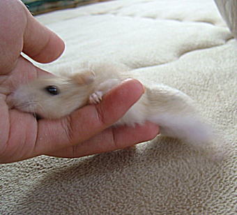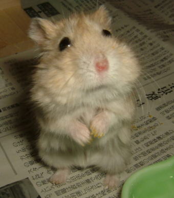 思えば、ハムスタさんと1対1でのお付き合いするのはこれがはじめて。“わらわら”が自然だったわたしは、妙にそわそわ、ドキドキしてます。虎は気がついているのかしら?淋しくないかしら??とか、そんなことも考えちゃう。 そして、そんななか気になることを発見。 虎しゃ、おめめが白くなってる。白内障なのかな・・・。 今日、外出してて、お世話の時間が遅くなった。電気をつけたとき、マイカーでハッスルしていた虎。そんな虎の目は、真っ白になってた。暗いトコにいたから、瞳孔が開いてたんだろう。 虎しゃ、現在1歳と10ヶ月。老化でしょうか? 今のところ、それ以外は健康。体重は37グラム、うんちょすも硬いし、おしっこもいたって普通。念のため、あたたかい日に病院へ行こう。日々のちょっとした変化も見過ごさないようにしよう。 こりゃ、ますますストーキングに磨きがかかるな(笑)