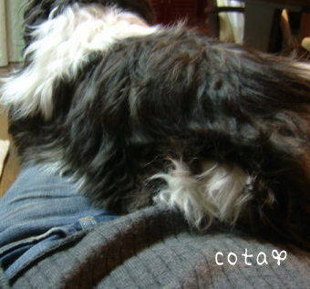 最近、ちょもっと忙しいわたし。・・・・と言っても、わたしよりも忙しい人のほうが多いと思いますけど。本来、ダラダラしているのがスキなんだけど、そうも言ってられないんです。 「あれもしなくちゃ」とか「あそこに行かなくちゃ」とか・・・・。 そうなると、面白くないのはコタしゃん。お豆たちは『うまうまを忘れなかったらいいだよ~』&『ダヨ・・・・・・』なんだけど、コタしゃんは終始『かまって!さわって!!だっこしてー!!!』なもんで。 まぁ、わんこだからね。わたし、ボスだし。 今日もバタバタしたあげく、ちょっと出かけようと思ったら・・・・・