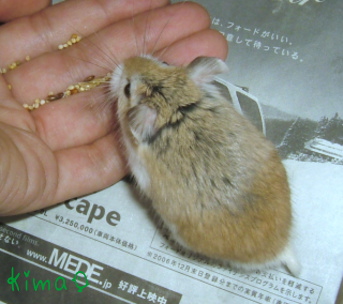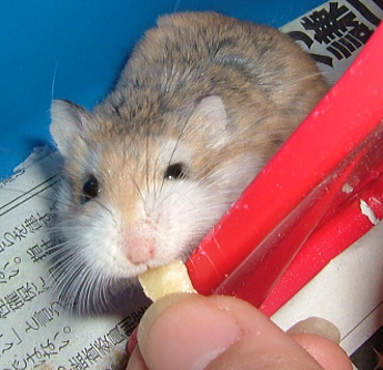 『こっちから こえがきこえるのだぞっ!』 こんな風に、わたしを見上げてくることも多くなりました。 どうやら最近では、わたしと接触するかしないかのギリギリな感じを楽しんでいる時もあるようです。 『フムフムなのだぞ・・・』と近寄ってきて、ヒゲがわたしの手に触れると『さわっちったなのだぞっ!ワー!ワー!!』と逃げていきます。んで、また寄ってくる、の繰り返し。心なし、楽しそうなんですよね~。 なので、どらしゃんに教えてもらった“手の上にちっさい好物を置いてみる大作戦”を決行! ↑に書いた行動を繰り返したあげく・・・・